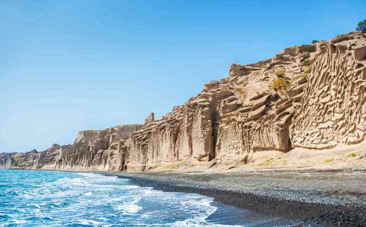 Directing to the north west, one reaches a plain known as Baxedes were the habitants of Oia used to grow dry fruits and vegetables. Baxedes was named after the Turkish word “Baxes” that means “garden”. On the other side of the Baxedes, towards the north, the north coast of the island lies covered by black volcanic sand.